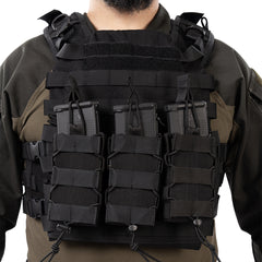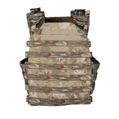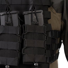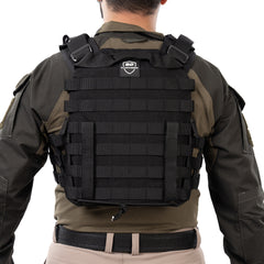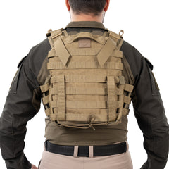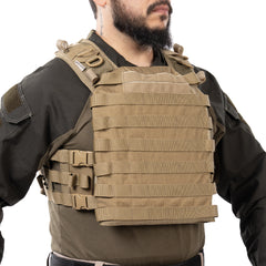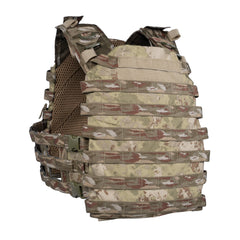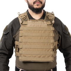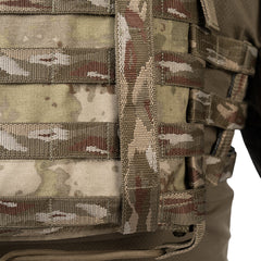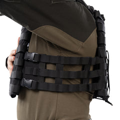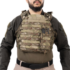 The MOLLE/PALS webbing system supports modular attachment of pouches and accessories. Reinforced stitching and load bearing webbing improve durability under load. Elastic side panels allow flexibility during movement while maintaining a secure fit. Ararat Plate Carrier is fully adjustable at the shoulders and sides to accommodate different body sizes. Internal compartments support standard hard armor plates and provide stable retention. Integrated routing channels help organize radio and communication cables.