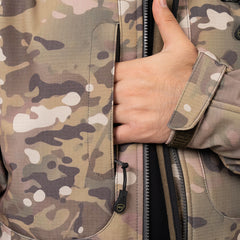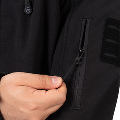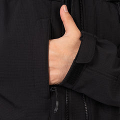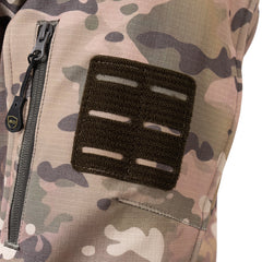 The ergonomic cut and stretch fabric allow natural movement through the shoulders and arms. Reinforced stitching and sealed construction improve durability over time. The Warden 1.0 Multipurpose Jacket includes five pockets for organized storage. Dual side zippers allow additional ventilation and easier access to carried items when needed. Sleeves feature adjustable hook and loop closures to secure the fit during movement. Laser cut patch panels are used for a clean profile and reduced bulk.
